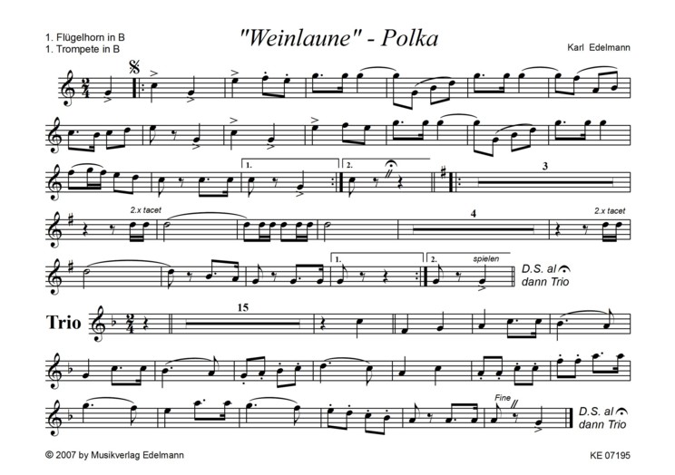 Stimmen: Direktion in C Flöte in C Es-Klarinette 1./2. Klarinette in B 1./2.... mehr