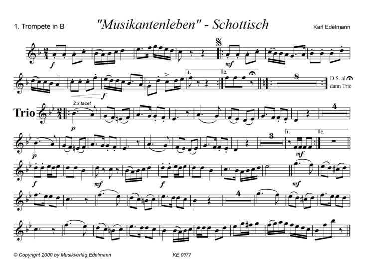 Stimmen: Direktion in C Flöte in C Es-Klarinette 1./2. Klarinette in B 1./2. Trompete... mehr