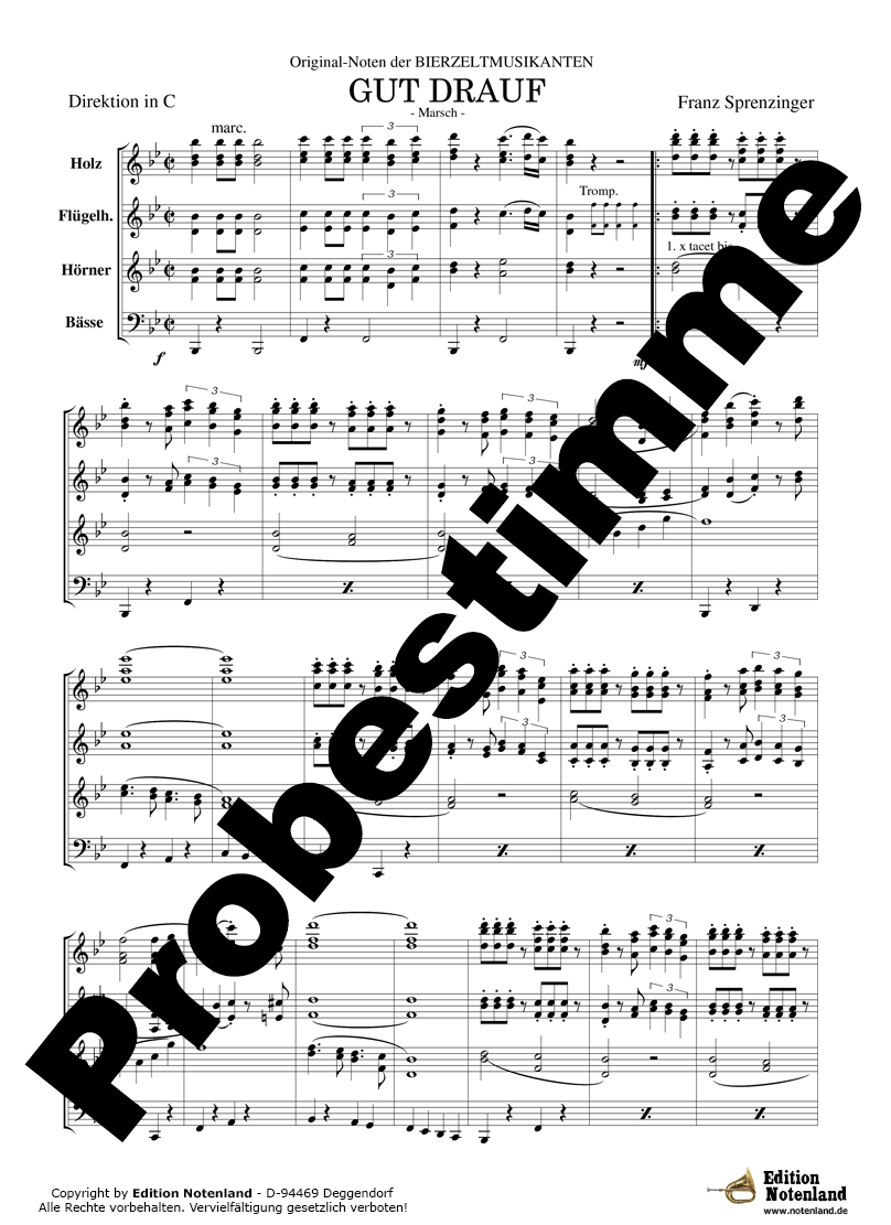 "Gut drauf" - das ist ein Musiker, der geübt hat. "Gut drauf" - das sind Zuhörer, die sich gut unterhalten fühlen. "Gut drauf" - das ist ein gefälliger Marsch, der schon in kleinster Besetzung und auch mit großem Blasorchester wunderbar spielbar ist. "Gut drauf" ist der Titelmarsch auf der ersten CD, die Komponist und Akkordeonist Franz Sprenzinger mit den Kollegen vom "BallastOrchester" eingespielt hat. Mittlerweile ist dieser Titel zum Eröffnungsstück und zur Erkennungsmelodie der Musiker im "Ballastorchester" geworden.