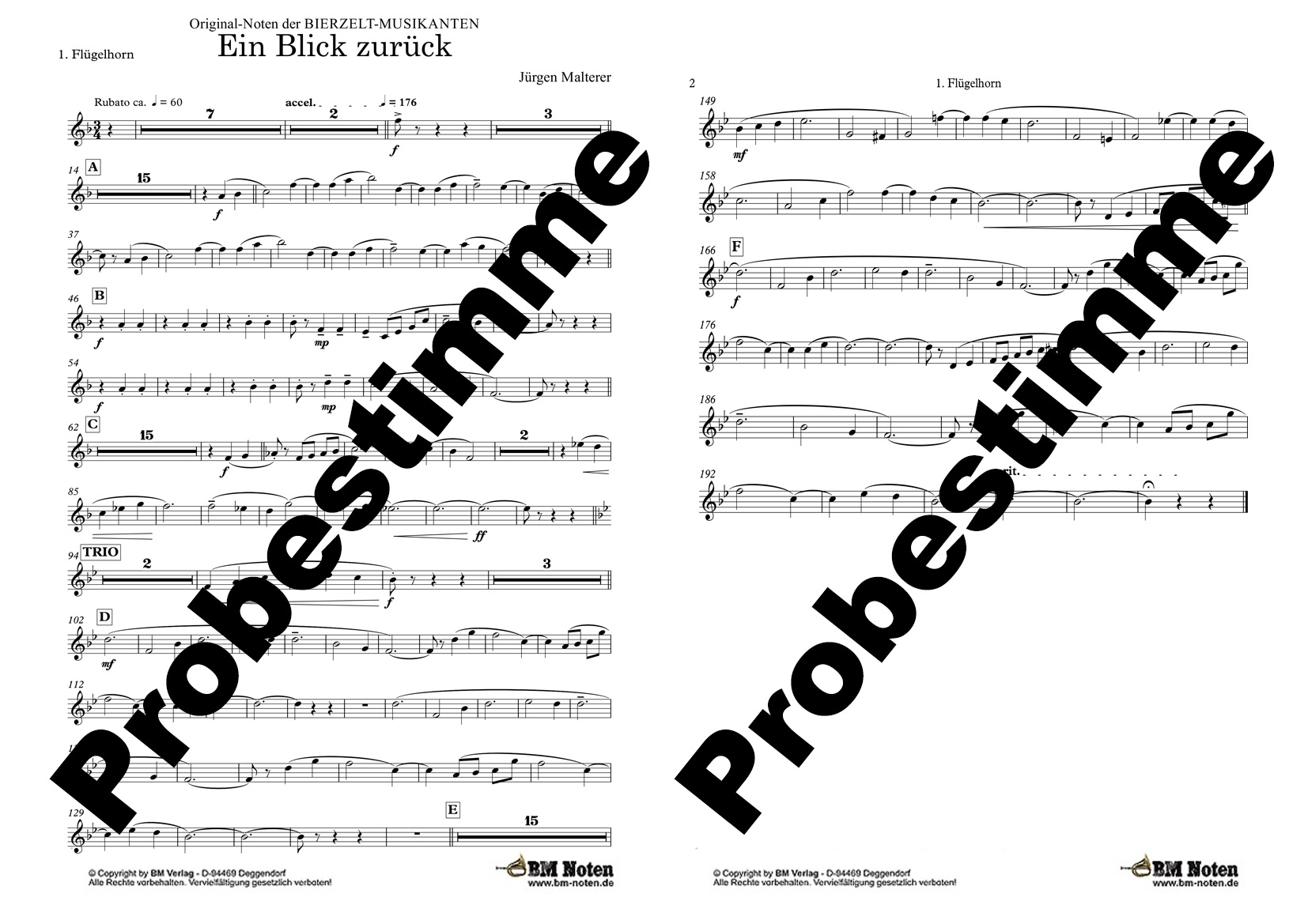 Jürgen Malterer hat es einfach, dieses Gefühl für die Melodieführung in der Böhmischen Blasmusik und das Gespür für das gekonnte Zusammenspiel der Instrumentengruppen. Und er ist selbst ein hervorragender Musikant und Könner am Tenorhorn. Das alles hört man diesem hitverdächtigen Walzer an. Offenbar hat Jürgen Malterer da alles hineingelegt bzw. hineinkomponiert, was er als leidenschaftlicher Musikant in verschiedenen Kapellen so erleben durfte. Entsprechend melodiös und freudig klingt er dann eben auch. Es sei jedem Musikanten gewünscht, dass sich für jeden persönlich "Ein Blick zurück" in Musik so anhört wie dieser wunderbare Walzer von Jürgen Malterer. Erschienen als Aufnahme von den Bierzeltmusikanten auf der CD "Ein Herz voll Blasmusik".
