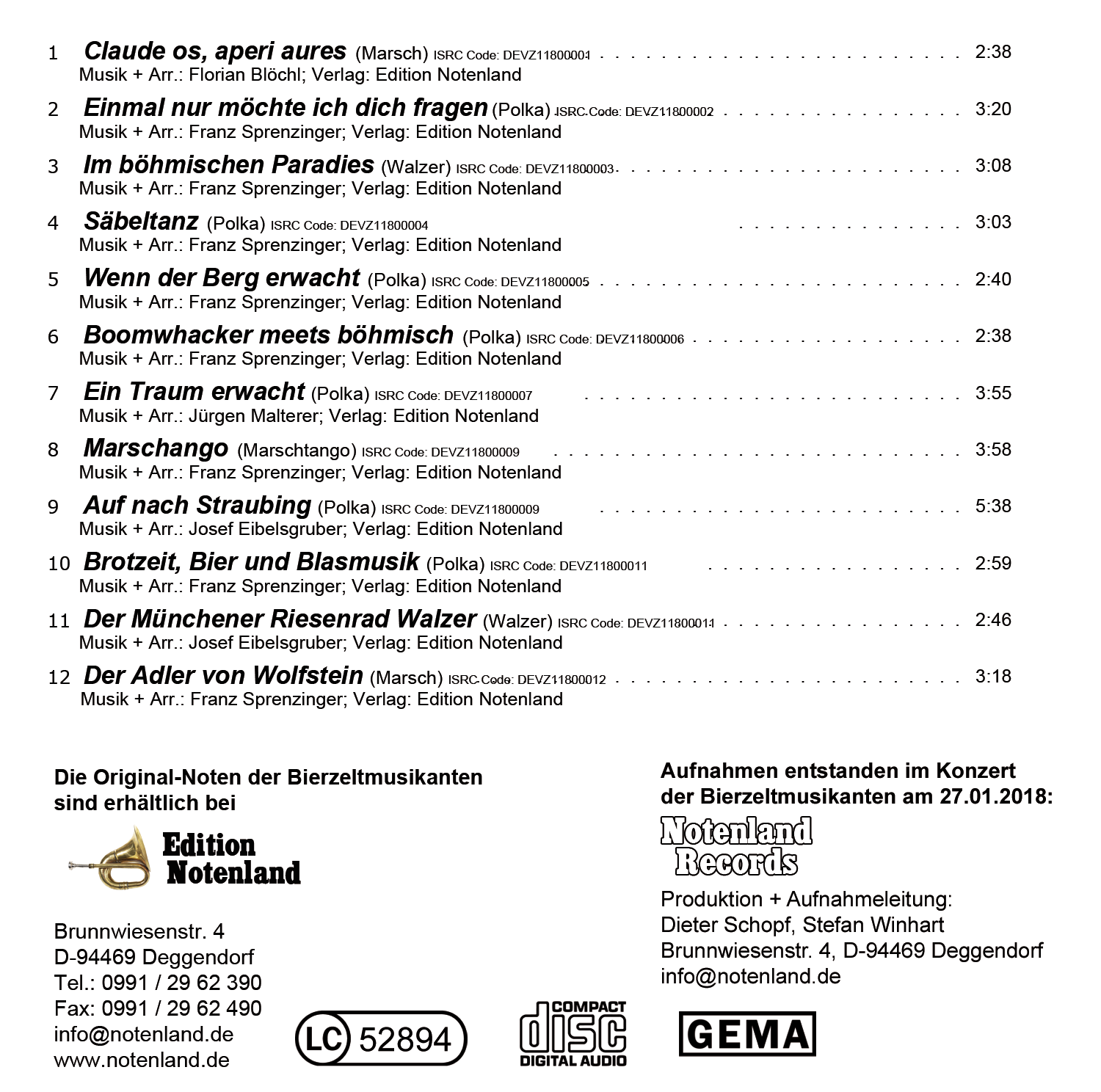 Titel: 1. Claude os, aperi aures – Marsch 2. Einmal nur möchte ich dich fragen - Polka 3. Im... mehr